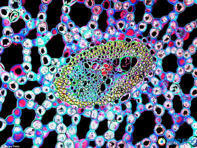 目前,科学家杰克-查罗纳(Jack Challoner)最新出版一本192页新书——《细胞:构建生命的视觉旅行》,书中刊登了250幅生物细胞显微图像,并对图像进行了文字描述。如图所示,图中美丽的簇状结构是白菖蒲植物地下根茎的横切面。